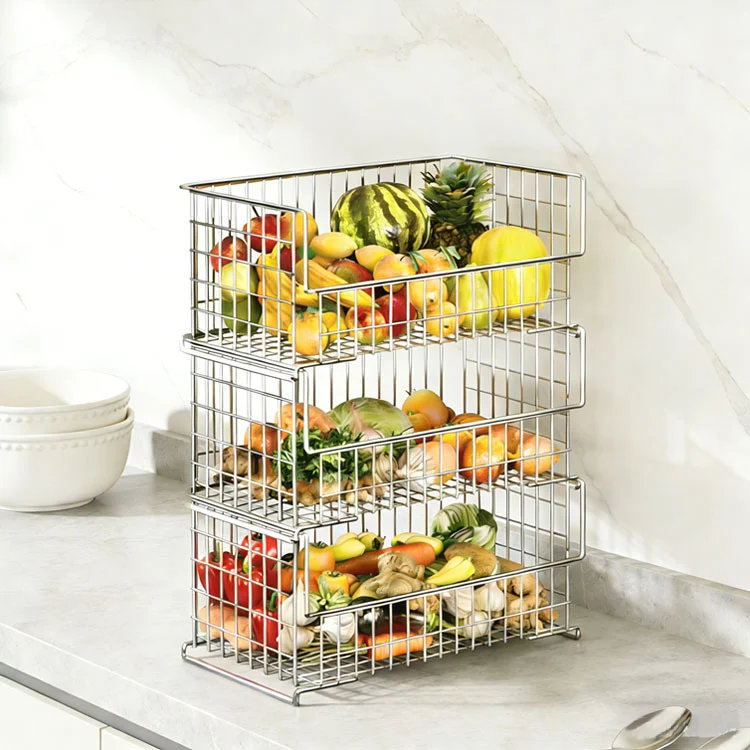 Cásanna úsáide: Is féidir é a chur i gcúinne na cistine nó faoin countertop, rud a ligeann do stóráil sraitheach glasraí, torthaí, sneaiceanna, rís, plúr, etc., "stóráil amhairc" a bhaint amach agus a chuirfidh ar do chumas sracfhéachaint ar na nithe a theastaíonn uait a fháil, rud a chuireann deireadh leis an deacracht a bhaineann le rummaging trí chaibinéid. Is féidir leis an dearadh cruachta ilchiseal úsáid iomlán a bhaint as an spás ingearach, rud a fhágann go mbeidh countertop agus urlár na cistine saor ó thranglam.